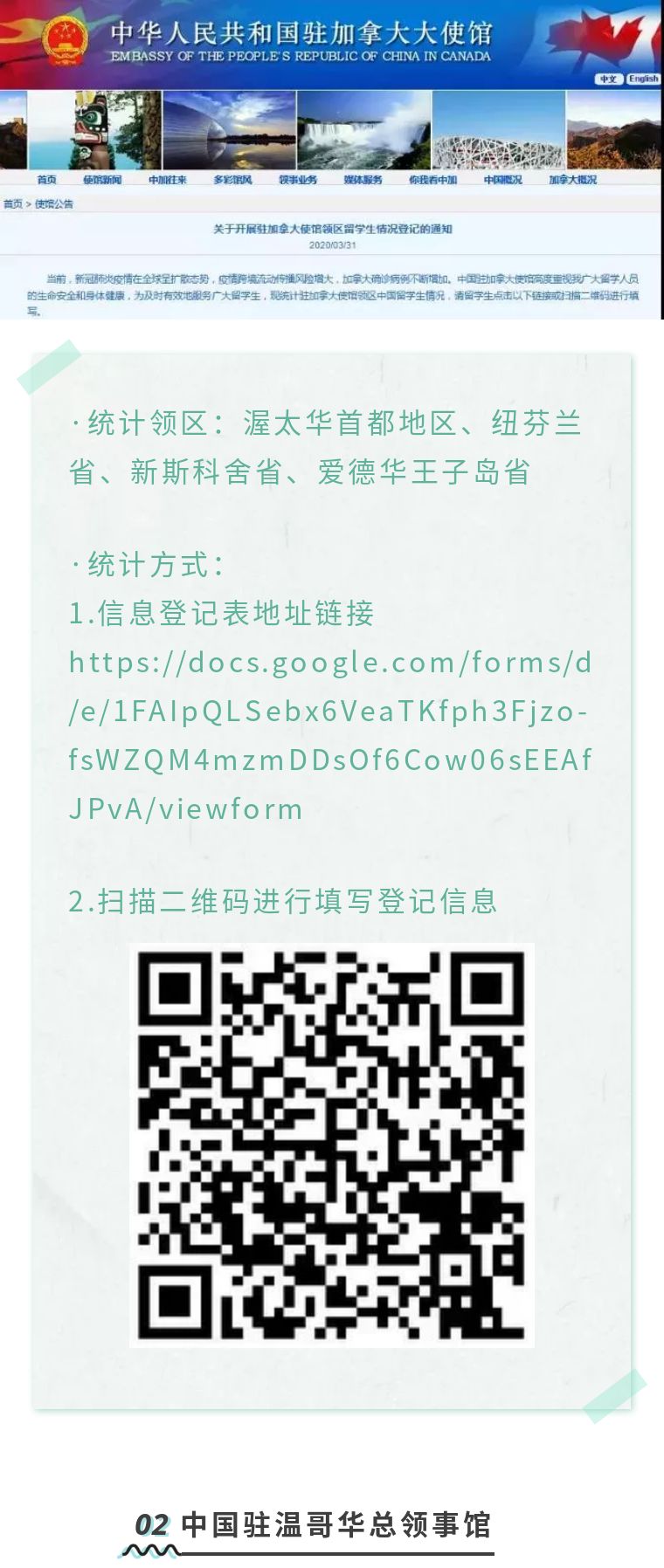 文章摘要:中国驻加拿大使馆已经开始行动,统计当地留学生的情况,随着疫情发展有望为孩子们提供更多服务。请加国留学生们尽快上网登记。