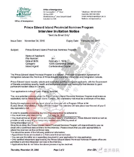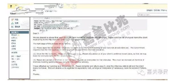 加拿大移民局官方发来PEI面试通知邮件: