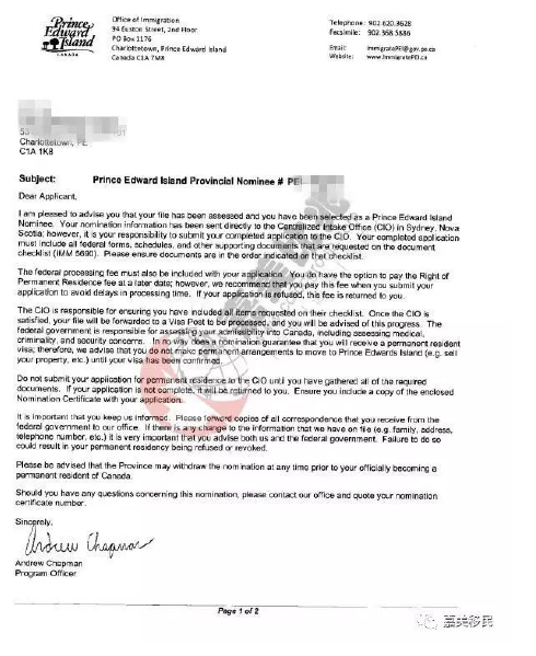 文章摘要:我司客户W女士-加拿大PEI(PrinceEdwardIsland)投资移民喜获其移民申请的省提名证!
