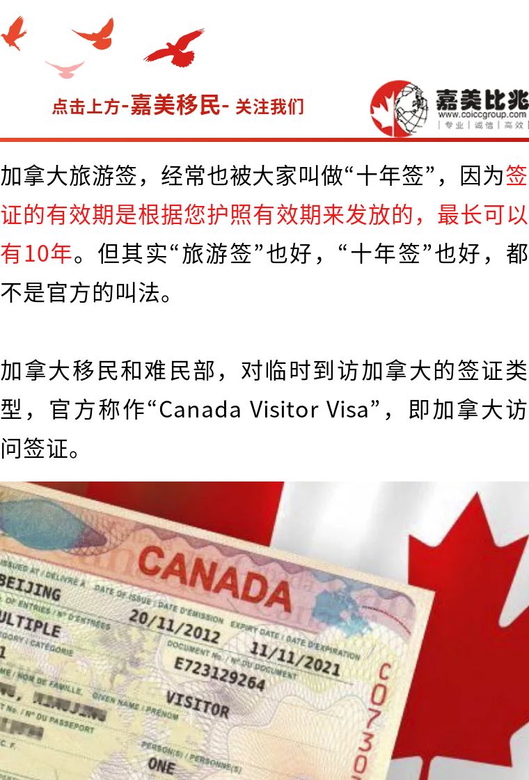 文章摘要:无论您是旅游、探亲或是陪读等,都是办理这个访问签证,只是根据具体目的不同,提供相应的资料。而无论出于哪个目的,获批后,最长有效期都是可达10年,可多次往返,每次停留期不超过6个月,签证上面的类似都是Visitor。