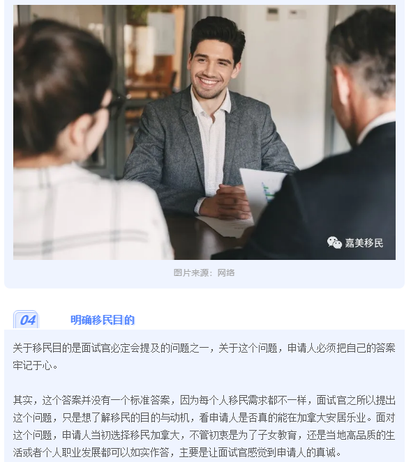 文章摘要:移民面试可以说是移民加拿大关键性的一步,移民面试相当于申请人自己去敲开加拿大的移民大门。