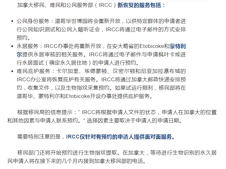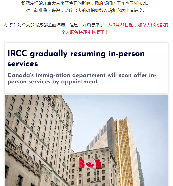 加拿大移民部即将全面恢复个人服务!移民进度有望加快!
