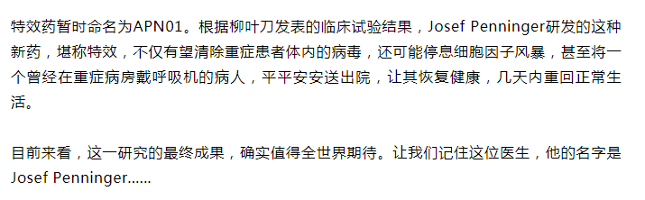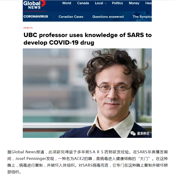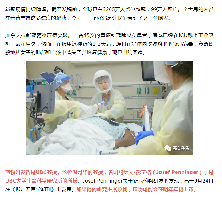 好消息!加拿大UBC教授研发新冠药物有突破!重症患者2天脱离ICU!