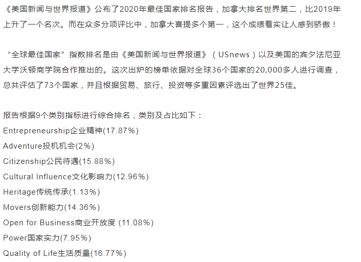 疫情下,加拿大荣登2020年全球最佳国家亚军!并狂揽多项第一!