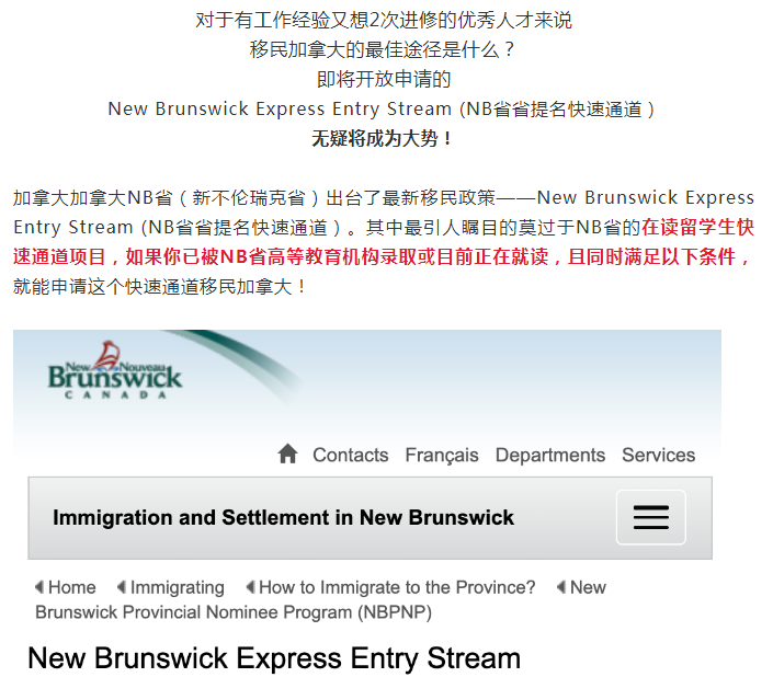 加拿大NB省最新移民政策!被大学录取或在读,即可申请移民!无需毕业,无需雇主担保,无需打分!