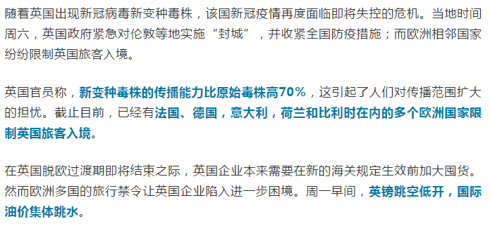 英国疫情恶化:新毒株传染力提高70%!欧洲多国紧急断航,英镑和油价跳水