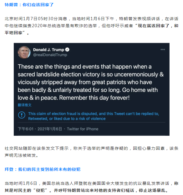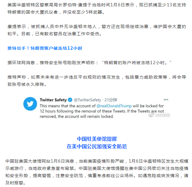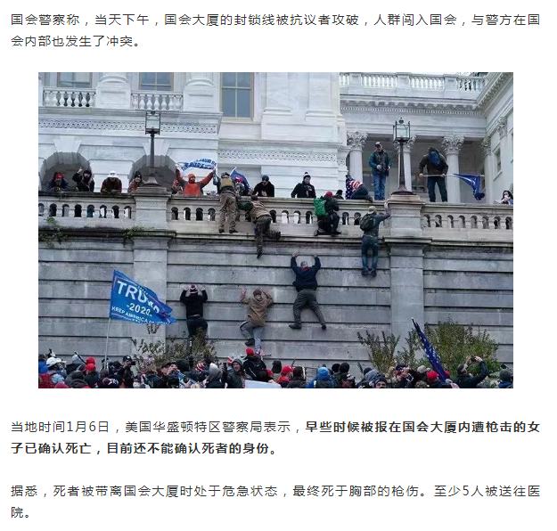 突发美国国会暴乱!已致1人死亡!特朗普推特被禁言…