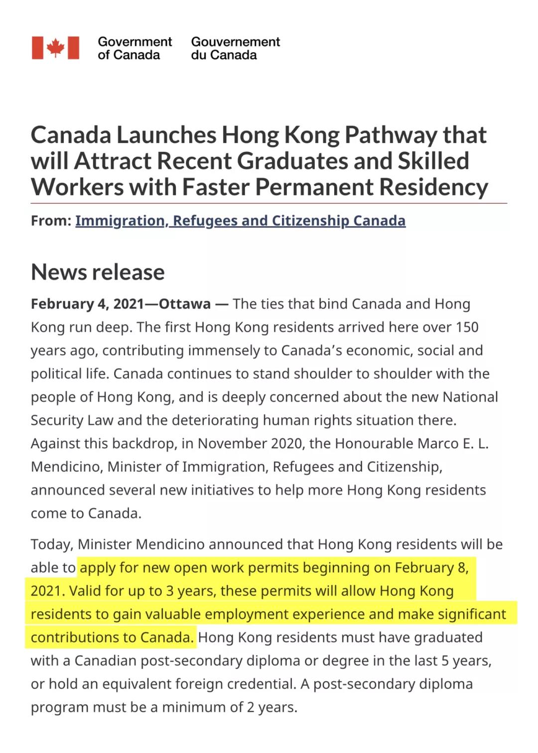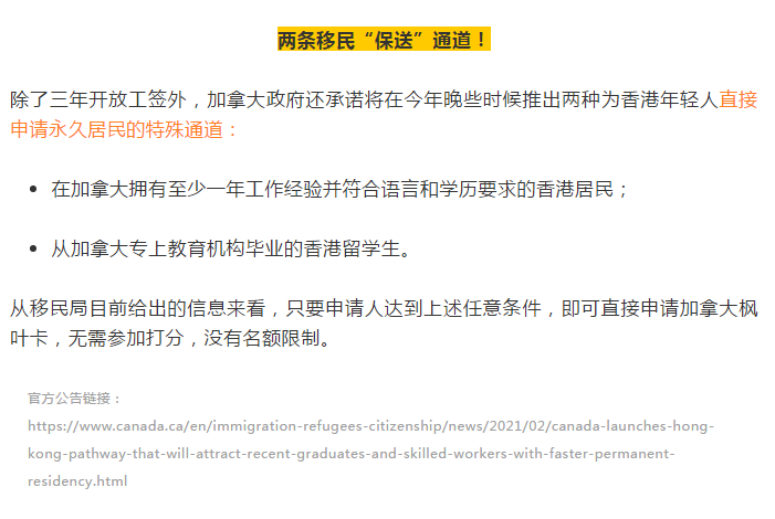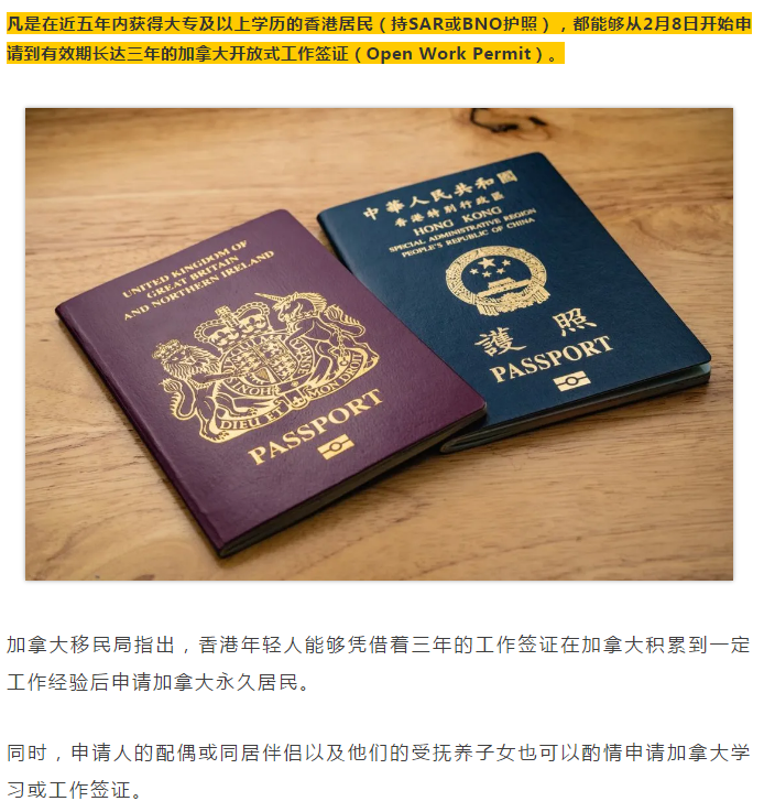 重磅!加拿大移民局为香港人开绿灯! 5年内毕业可申请3年工签!