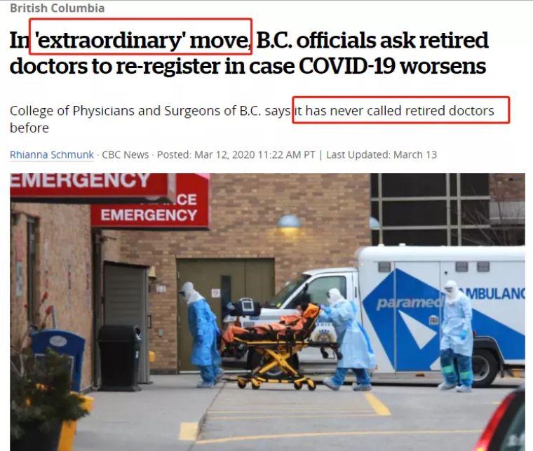 此前BC省和魁省政府发出呼吁,如果新冠疫情急剧恶化,希望一些已经退休的医生能够重返工作岗位,和大家一起对抗疫情!缓解目前人手短缺的情况。