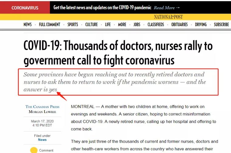 医者仁心!加拿大数万退休医护主动请战新冠病毒!