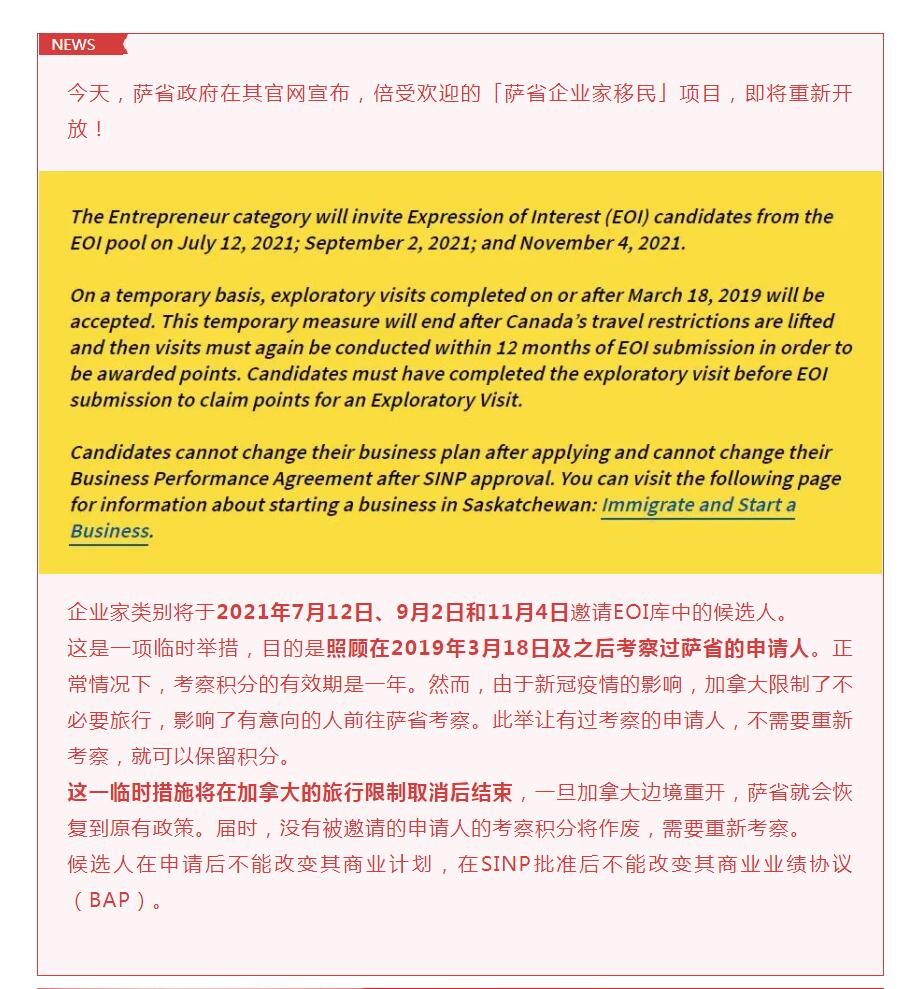 重磅!“萨省企业家移民”重新开放! 无语言要求, 审批快, 惊喜回归!